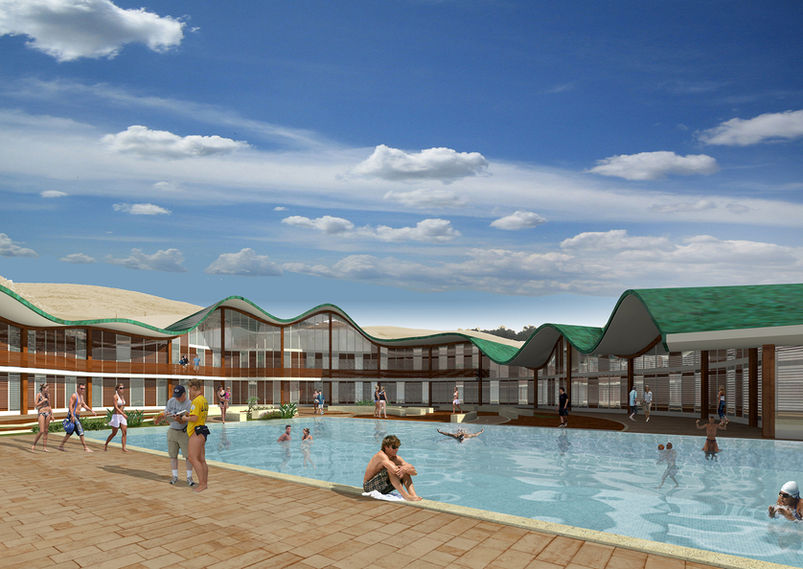 L’area interessata dal progetto è sita in località Mar Azul, località turistico-balneare posta a circa km 450 a sud di Buenos Aires in Argentina. La caratteristica principale dell’area consiste nel suo particolarissimo ed unico contesto ambientale caratterizzato da dune di sabbia che si estendono per circa 2 chilometri dal mare. L’area di progetto si trova al limite di una lunga fascia urbanizzata costituita da avenidas e calles che intessono il territorio con un’edificazione costituita da piccole costruzioni, quasi sempre monofamiliari, destinate a residenze per le vacanze che si rifanno alla tradizionale tipologia del cottage in legno o alla villa di spiccato sapore modernista in cemento armato, in entrambe i casi le costruzioni sono ben mimetizzate nell’esteso bosco di pini secolari che contribuiscono, in parte, a ripararle dal ricorrente vento del sud. Il programma costruttivo prevede la realizzazione di un grande complesso residenziale autonomo dotato di tutti i servizi quali centri commerciali, attrezzature sportive, servizi per il culto, attrezzature balneari e servizi pubblici.